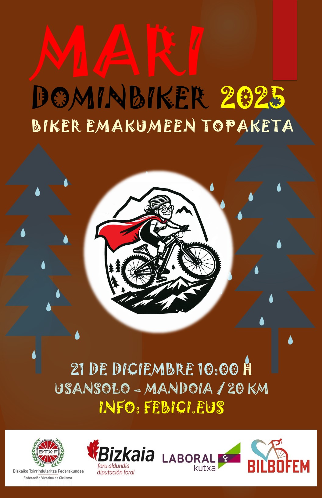 ℹ🚲🚲 MARI DOMINBIKER” irteera/topaketa emakume txirrindularientzat FEBICI (Igandea, 2025eko abenduak 21) “FEBICI Emakumeen Batzordeak” abenduaren 21erako, igandea, irteera/topaketa bat proposatzen du mendiko bizikleta pixka bat erabiltzen duten txirrindularientzat. Mandoia mendira......
